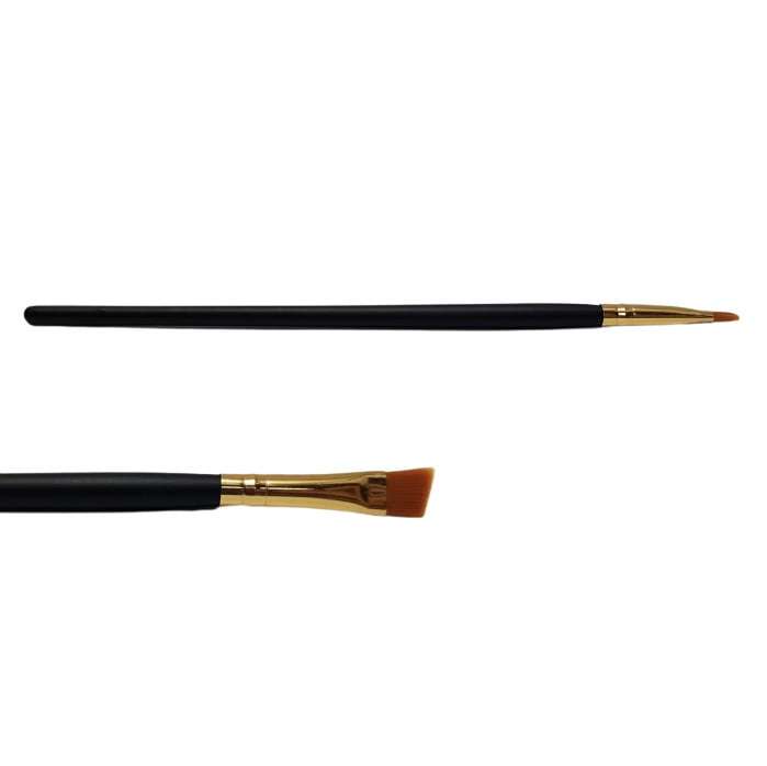 Brush for applying eyelash and eyebrow paint. Due to the slanted edge, this brush works perfectly for applying the refectocil eyelash and eyebrow paint.