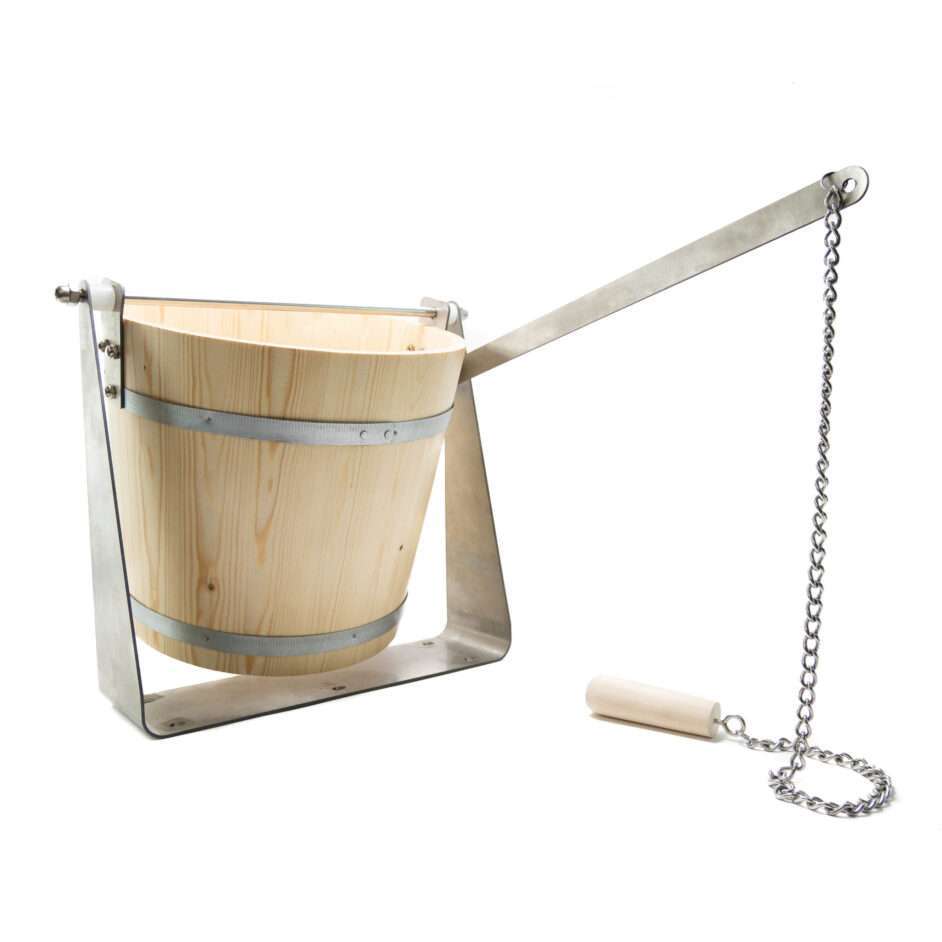 This wooden Cool Down Bucket that fits 28 liters of water with stainless steel mounting bracket is ideal for cooling down properly after the sauna. There is a stainless steel pull cord with a wooden handle.
